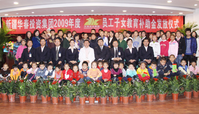 11月1日,華春投資集團員工的近百名子女歡天喜地的迎來了一個在首府乃至在全疆絕無僅有的特殊節日——華春投資集團舉辦2009年首批員工子女教育補助金的啟動儀式,當天就有84個員工家庭的子女領到了近十萬元教育補助金,其中有一個員工家庭的3個子女同時獲得教育補助金,另一個員工家庭的兩個子女獲得了7000元。