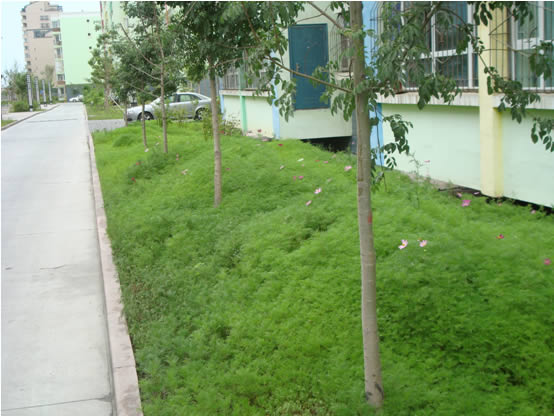 蘇杭明珠花園小區內總高近百米、地上建筑31層的華春鑫座,是河南東路地標性建筑,打造華春鑫座周圍的園林綠化更是這項綠化工作的重點之一,僅華春鑫座周圍的園林綠化,公司就投資100余萬元。華春鑫座周圍地面全部為花崗巖石材鋪貼,修建了廊架、亭臺、大小花壇共計9個,花壇內種植了各色花卉,鵝卵石及青石板鋪貼的休閑園路,人性化的休息座椅隨處可見,給主業創造了一個愜意的休閑小憩的綠色環境。