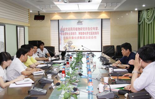 在中央對口大力支持發(fā)展新疆政策背景下,結合新疆豐富的藥業(yè)資源背景,利用國內一流醫(yī)藥科研機構研發(fā)優(yōu)勢、華春投資集團自主運作優(yōu)勢,共謀“新疆藥用植物及民族藥開發(fā)與產業(yè)化”大計,設計以市場需求為導向、科技技術作為支撐、政府參與為主導、企業(yè)為龍頭、新疆地方資源配套、民族藥開發(fā)為題材、經濟、社會效益為核心的,符合自治區(qū)和國家十二五醫(yī)藥規(guī)劃的實施方案,達成了合作意向,并簽訂了相關協(xié)議文件等。