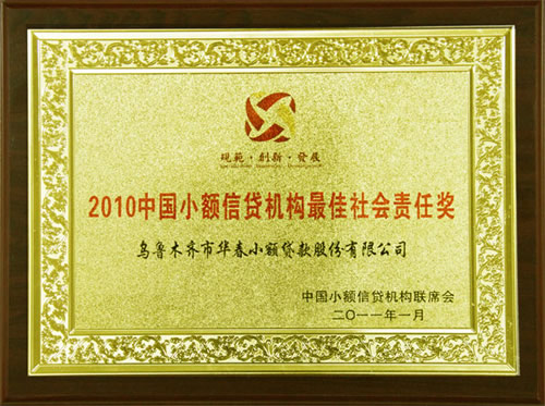 獲得“2010中國小額信貸機構尚佳社會責任獎”的小貸機構,均要求對中國小額信貸行業有突出貢獻,具備良好發展潛力、貸款額達到相當規模、利潤保持持續較高增長,在推動小額信貸行業規范、持續發展上成績顯著,在小貸領域有廣泛的知名度。華春小貸作為新疆小貸領域的杰出代表,一舉獲得2項殊榮。