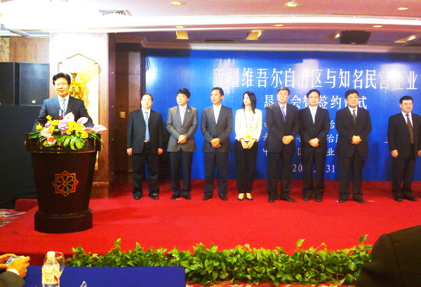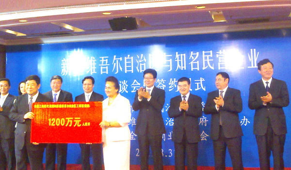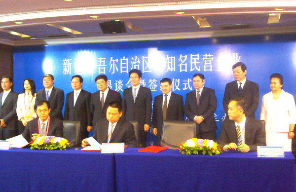 新疆維吾爾自治區與蘇寧環球集團、東方希望、萬達集團、四川宏達、泛海集團、金花集團等國內知名民營企業,進行了總投資額達1200多億元的7個重點投資項目的簽約。