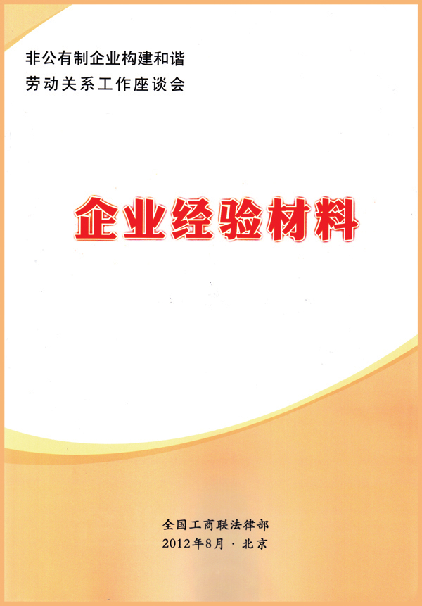 今年8月,華春集團(tuán)與華春工會(huì)的先進(jìn)事跡收入了由全國(guó)工商聯(lián)主辦的非公企業(yè)構(gòu)建和諧勞動(dòng)關(guān)系工作座談會(huì)企業(yè)經(jīng)驗(yàn)材料匯編之中。